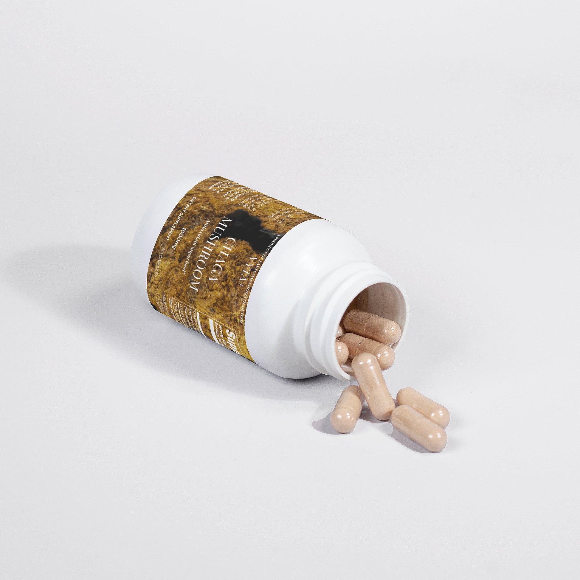 Ingredients: Organic Chaga (Inonotus obliquus) Mushroom Mycelium Powder (Standardized to 40% polysaccharides [400mg]), Organic capsule (pullulan, water), silica.